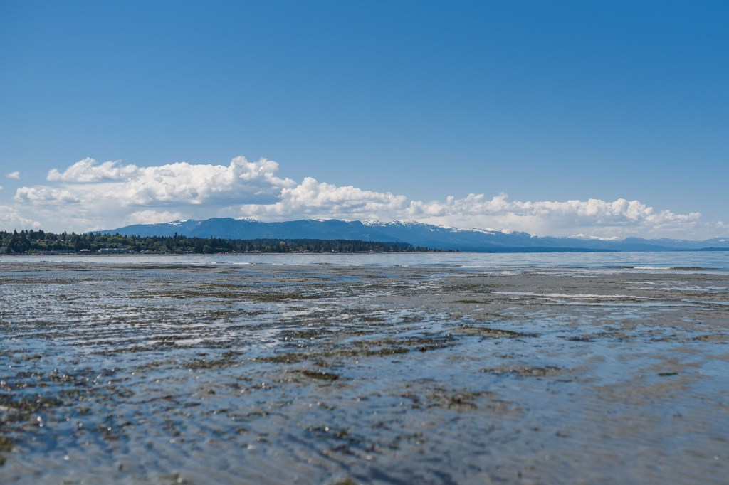 We stopped at a grocery store to pick up more snacks, smoked salmon, cheeses, and fruit. We then headed to Rathtrevor Provincial Park, a lovely park with a nice beach full of kites and picnic tables. We came here once for a walk and then the following day for a 5km run through the park before heading for lunch.