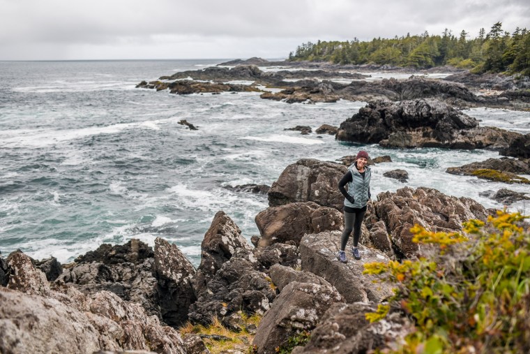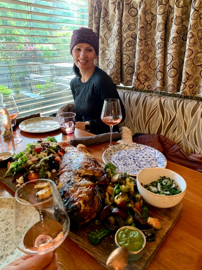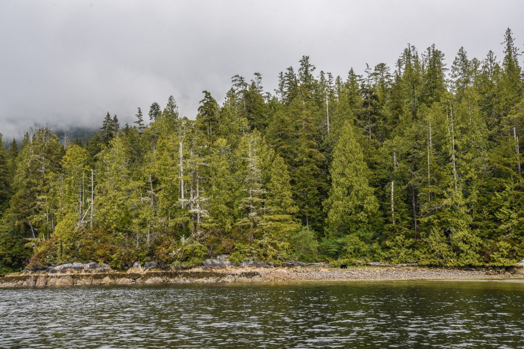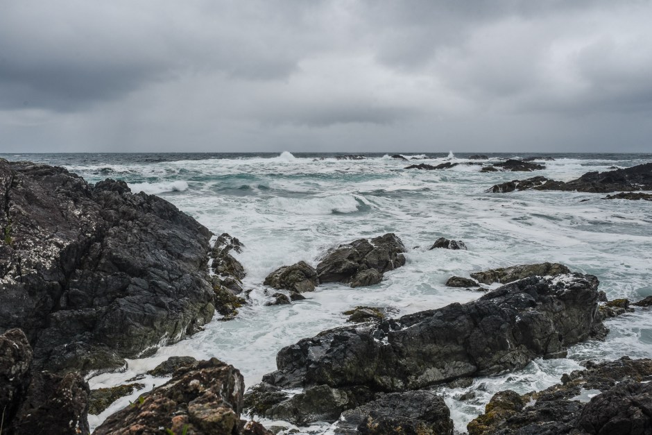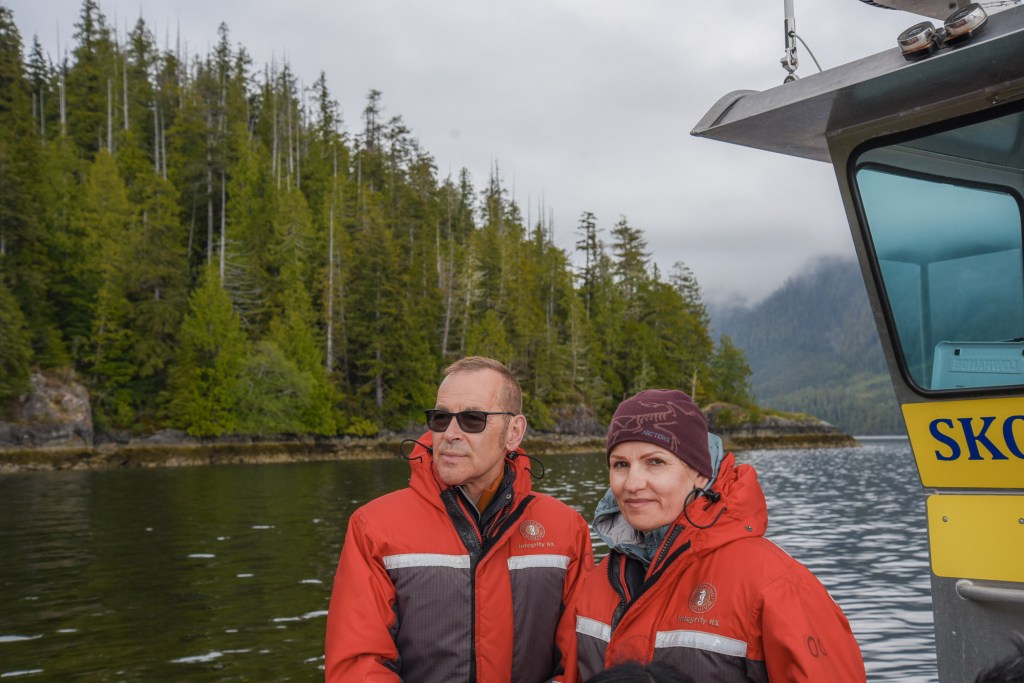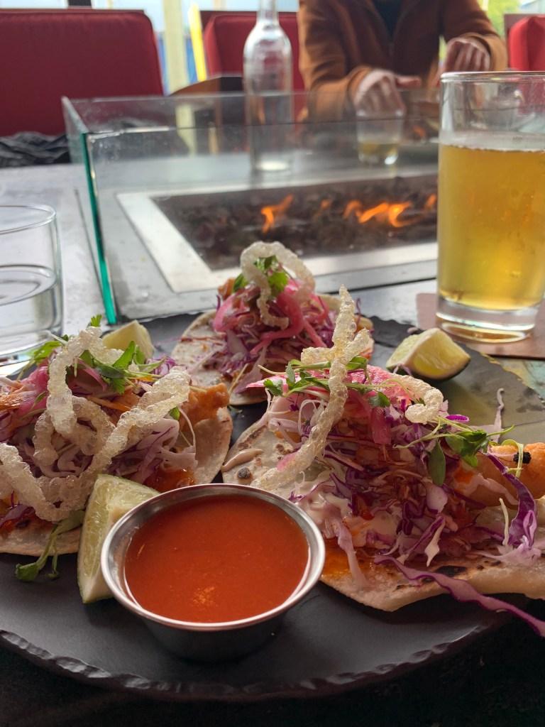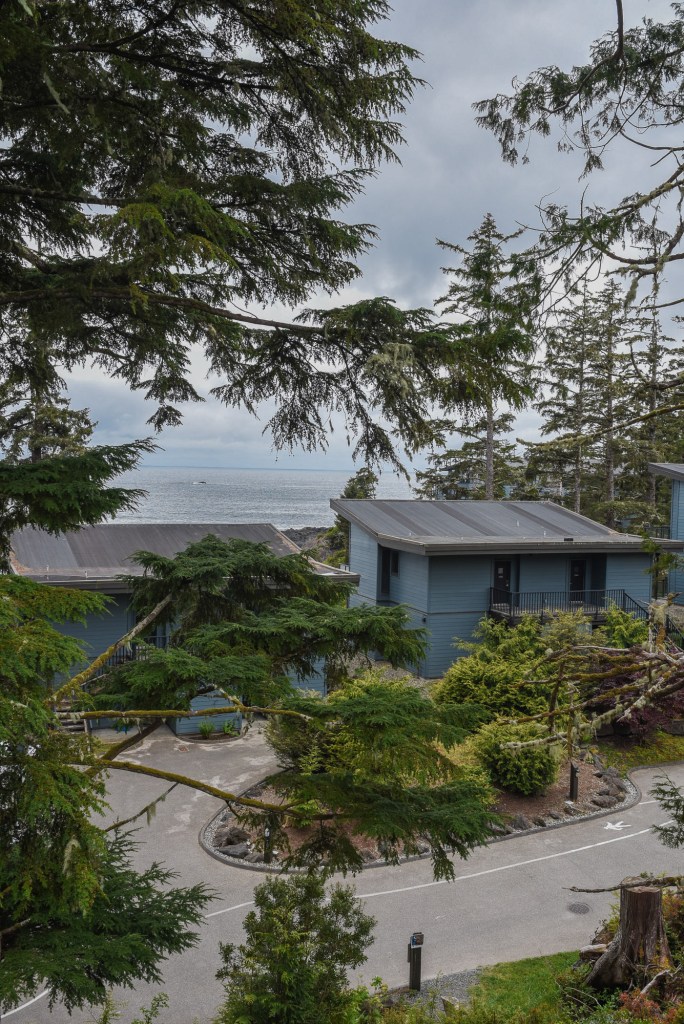 We went to Tofino to do a bear tour via boat. Unfortunately, the covered boat was not available, so we ended up with these bright red spacesuit-looking overalls in an open boat. We have several bears in Alberta, so the sightings weren’t too eventful. But my mother wearing the red get-up was priceless. If I went again, I would do a seaplane tour, as it would be cool to see the beaches from that unique vantage point. We stopped at Shelter for lunch, which had a lovely, heated patio with a fireplace and a great view.